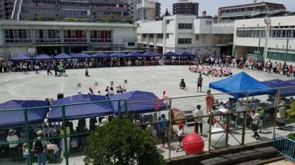 高学年の短距離走です。順調にプログラムが進んいます。子どもたちは、元気に競技、表現を発表しています。