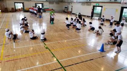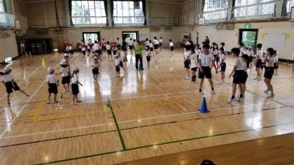 1年生と6年生がペアになり、「シャトルラン」の記録を計測しました。