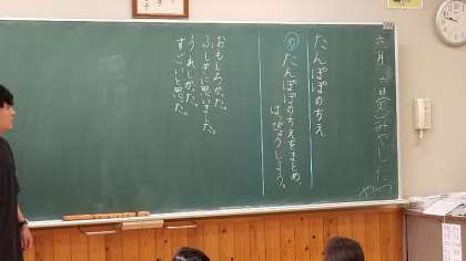 「たんぽぽのちえ」の説明文の学習をしています。たんぽぽのちえが書かれている文章を考えて、プリントに書きました。書いたプリントを友達と交流しました。