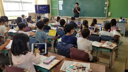 タブレットを活用しながら授業を行っています。