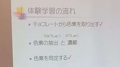今回は、「食品の着色」について、体験学習を行っていただきました。