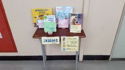 この写真は、中学年おすすめの本を教室の前に展示しています。