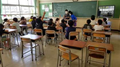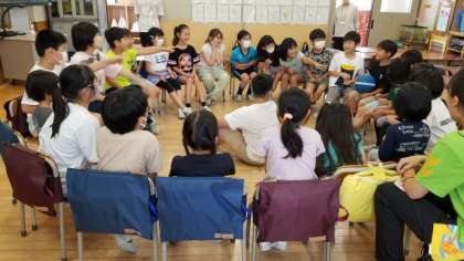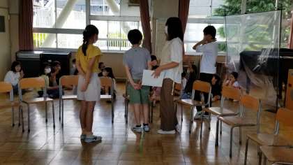 ロング昼休みにして、たてわり班活動をしています。6年生が、丁寧にゲームのルールを説明しています。