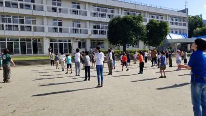 3日目の朝会です。昨日のハイキングの疲れから子どもたちは、ぐっすり眠りました。