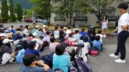 宿舎に到着しました。開校式を行いました。実行委員が、しっかりと進行しています。素晴らしいです。
