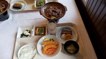 夕食です。たくさん歩き、汗をかきました。お風呂に入りさっぱりしました。