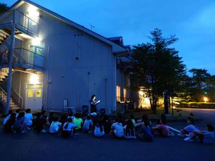 昨晩の肝だめしのスタート前に、校長がイギリスの怖い話をしました。