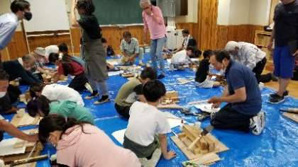 木工教室です。今年度は、木道具箱づくりを多くの大工さんにサポートしていただきました。