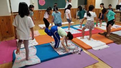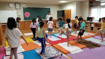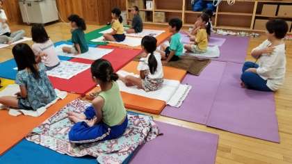 「キッズヨガで動物ポーズに挑戦&カード作り」は、保護者の方々のご協力で行うことができました。