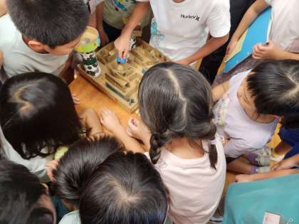 自由研究の発表会をしています。遊び方を紹介しています。
