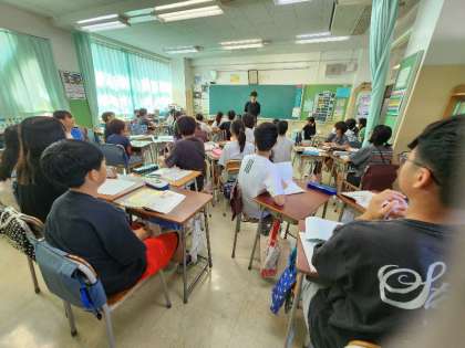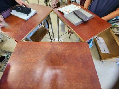 6年生も「対話」の学習をしています。机を三角にして、活発な対話がされていました。