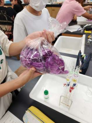 ムラサキキャベツから指示薬を作りました。