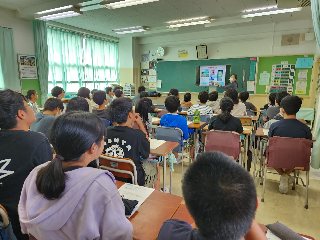 6年生が、ネットリテラシーの学習を行いました。SNSに投稿することには、大人、子どもの区別なく責任がともなくことや投稿することで、拡散するので完全に消すことは、できないことも学びました。