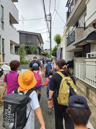 上級生と下級生が、バディを組んで上手に道を歩きました。