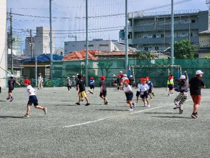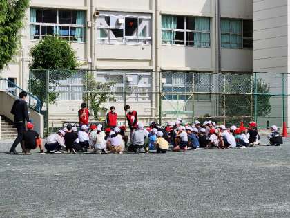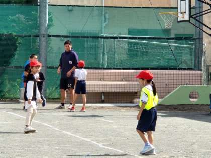 鬼になった子は、教員とじゃんけんで勝つと鬼でなくなるルールになっています。たてわり班の班長を中心に活動を行います。