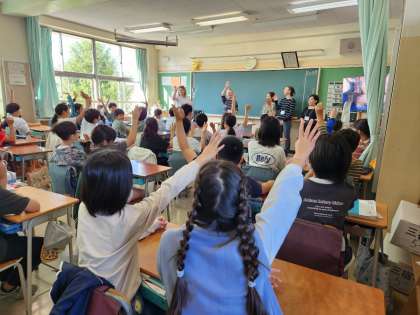 5年生は、ALT の方々と楽しくコミュニケーションをとっていました。
