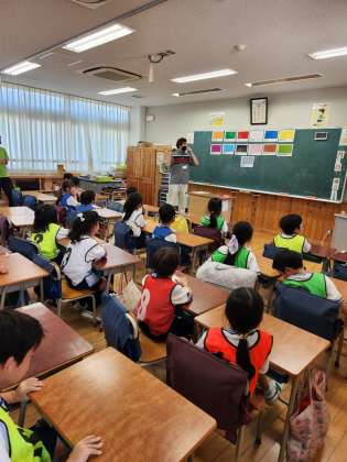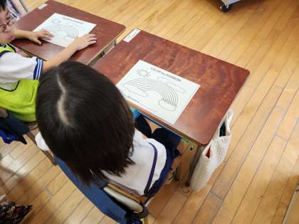 色を英語で発音する学習です。元気な声が教室に響きます。