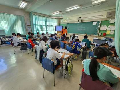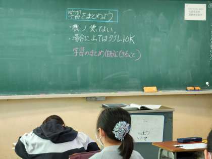 タブレット、資料集、ノート、教科書などを使い学習して分かったことをワークシートにまとめています。