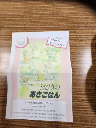 ねずみの家族がパンとスープの朝ごはんを作るお話です。