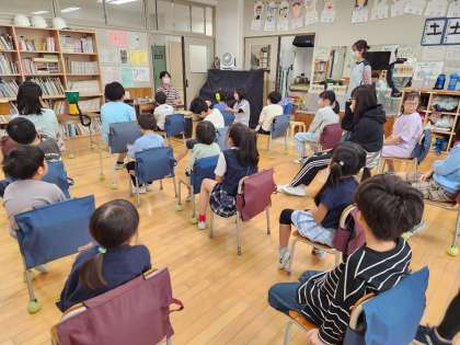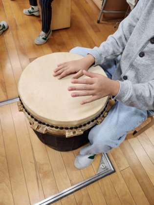 それぞれの太鼓の特徴の説明をしっかり聞いて、体験しています。
