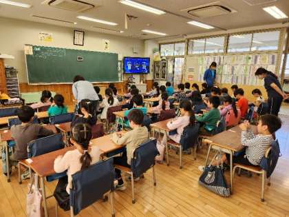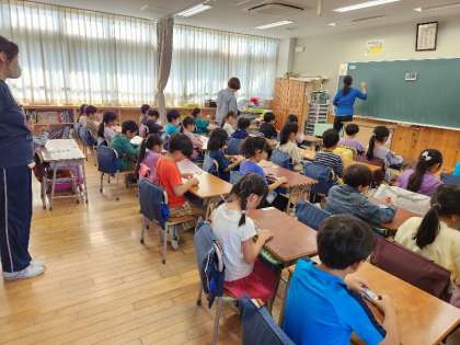 1桁の繰り上がりのある足し算をカードを使って一人一人自分で声を出して、確かめています。