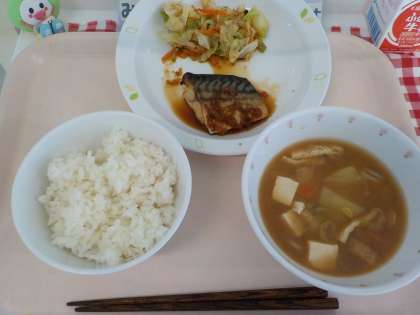 本日の給食は、有機米ごはん・魚のしょうが風味やき・野菜のおかかあえ・味噌汁・牛乳です。