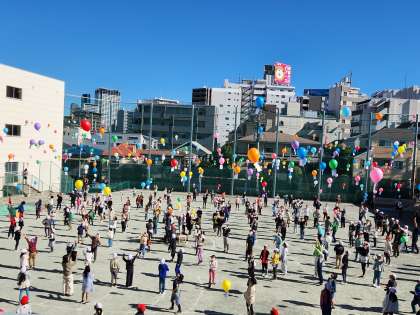 バルーンリリースは、青空にきれいに飛んでいきました。PTA会長のご挨拶の中に「気持ちをこめてください。」とありました。子どもたち、一人ひとりが様々な気持ちを込めて空へ放ちました。とてもきれでした。