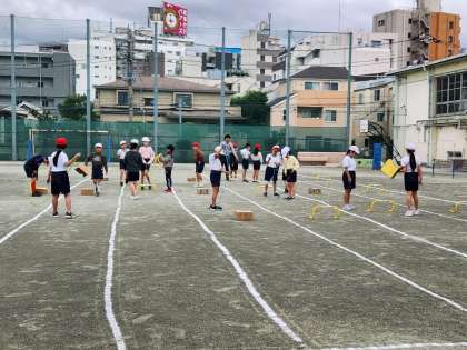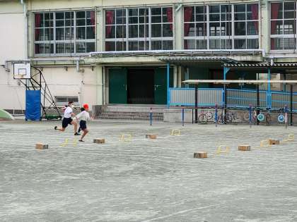 ハードルの学習です。第1時なので、低いハードルで、走り抜ける学習をしました。