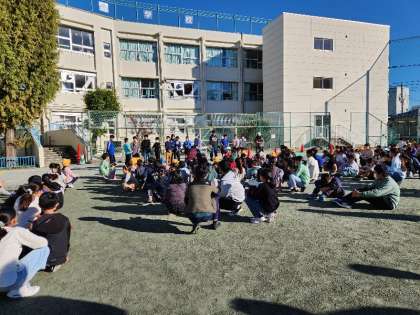 風もなく天気のよい朝です。今朝は、児童集会を行いました。今週末に予定している全校遠足のチェックポイントで行うゲームで楽しみました。