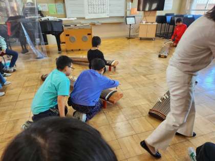 琴の学習です。プロの演奏家の「さくらさくら」の演奏を聞きました。爪をつけて音を出してみました。