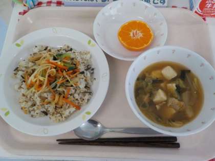 本日の給食は、ビビンバ・豆腐チゲ・みかん・牛乳です。