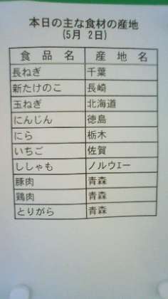 今日の献立です。