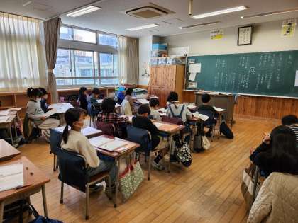 学級で話し合ったあとに、自分の考えをかいています。どの子も集中してとりくんています。
