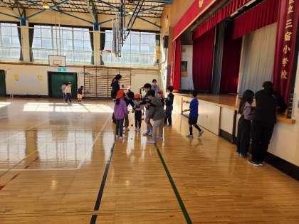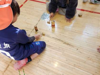 お手玉、けん玉、ふくわらい、だるま落としを保育園児と楽しみました。