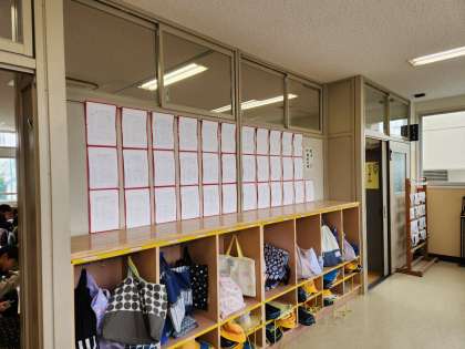 1年生は、硬筆で書き初めを行いました。一画一画丁寧に書いています。