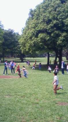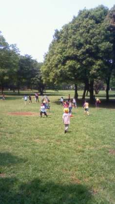 さあ、いよいよグループでの遊びです。鬼ごっこやだるまさんがころんだ などで思いきり体を動かして遊んでいます。