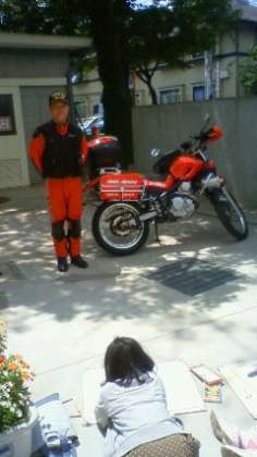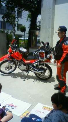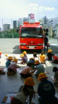 今日は1年生と2年生がはたらく消防の絵 写生会です。消防自動車と消防オートバイを描いています。天気に恵まれ、気持ちのよい写生会になりました。