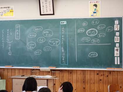 文学的文章の学習をしています。担任が全部を読んで聞かせています。