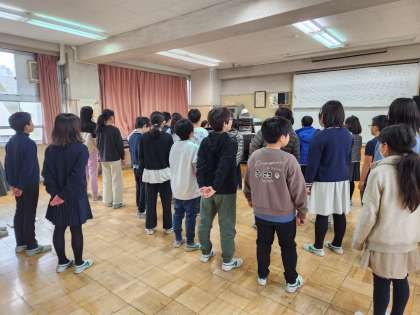 卒業式に参列者する5年生が、歌、入退曲の演奏の練習をしていました。