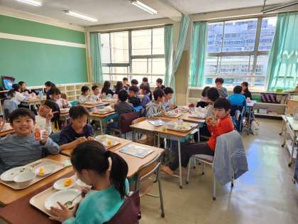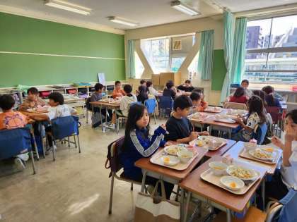 おしゃべりも楽しみながら給食をどのクラスも食べています。