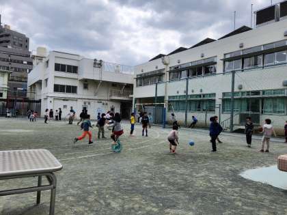 給食が、全校で実施となり、5時間目も始まりました。昼休みは、2年生以上の子どもたちが、元気に遊んでいます。