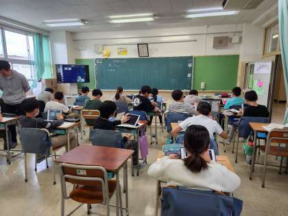 「点対象」の学習をしています。習熟度別に分かれて3グループで学習しています。