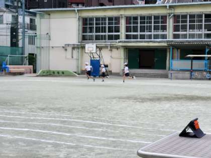体育の短距離走をしています。1年生から6年生まで、上手にカーブを走ることができました。