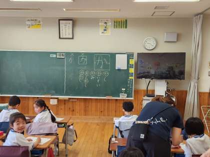 ひらがなの学習をしています。世田谷区の講師も入り、複数の教員で指導しています。
