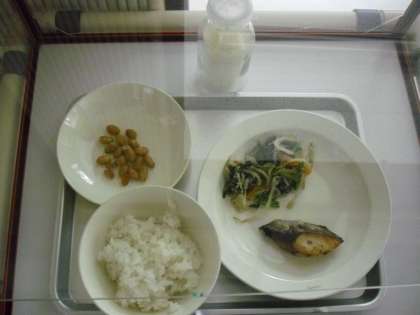 今日は、ごはん、牛乳、魚の西京焼き、野菜のごま和え、ぶどう豆です。運動会の練習で子どもたちも疲れがたまっています。栄養をたくさんとって、土曜日、日曜日はゆっくり休ませてあげてください。