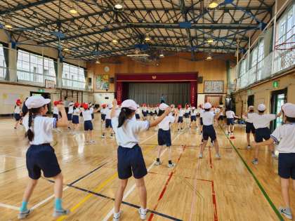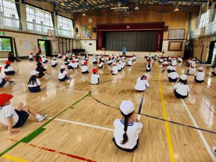 わかば学級、通常学級の中学年による「よさこい」の表現運動の練習です。