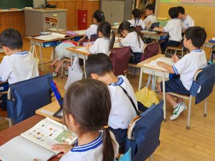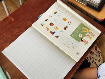 初めて国語のノートに文字を書きました。1画1画とても丁寧に書けていました。