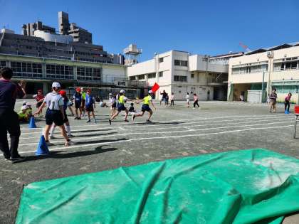 中学年、高学年リレーのこどもたちは、集中して練習に取り組んでいます。