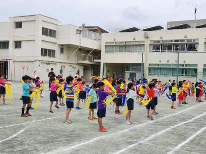 本日は、運動会のリハーサルです。各ご家庭に用意していただいたTシャツを着てダンスの練習をしたり、団体競技、短距離走の練習をしたりしています。