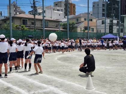 全校競技の大玉送りです。全校が団結して取り組みました。